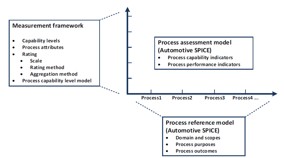 ASPICE (or Automotive SPICE) is a standard framework applied to company processes to avoid risks and minimize failures on the end user. It provides methods to score each supplier and their whole process structure.