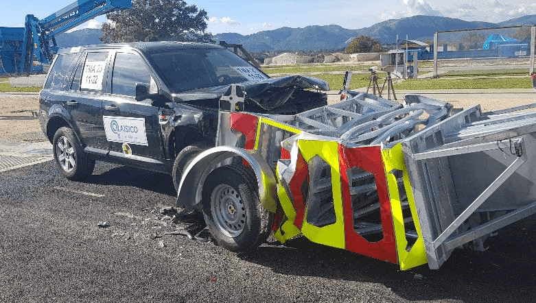 A prototype of the TTMA mobile absorber, meeting the requirements of European standard CEN/TS 16786:2018 for an impact speed of 100 km/h (confirmed by experimental tests).